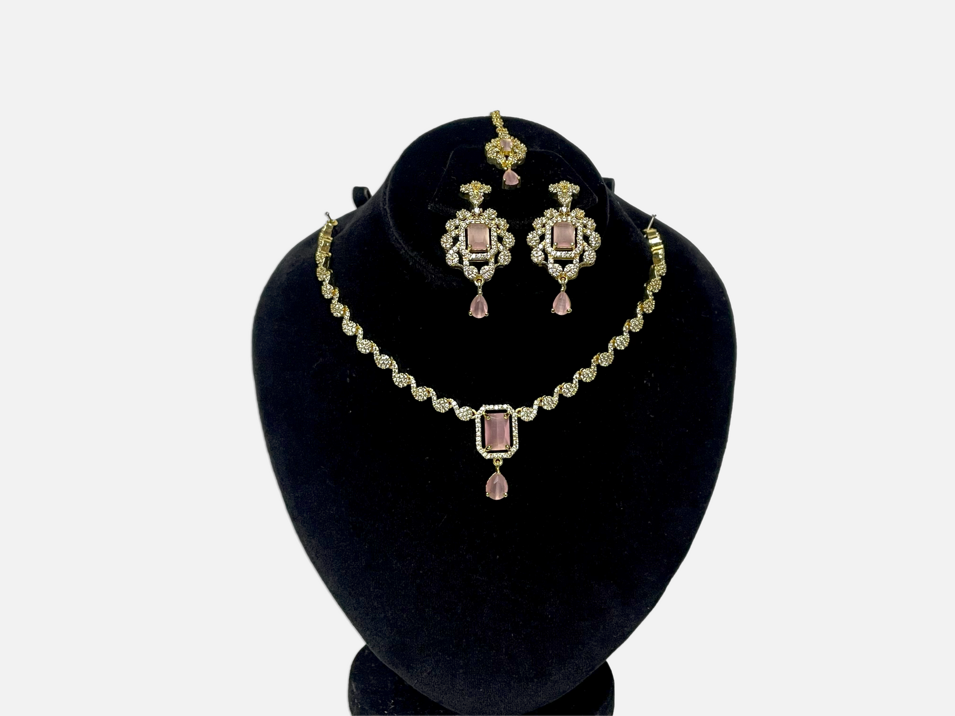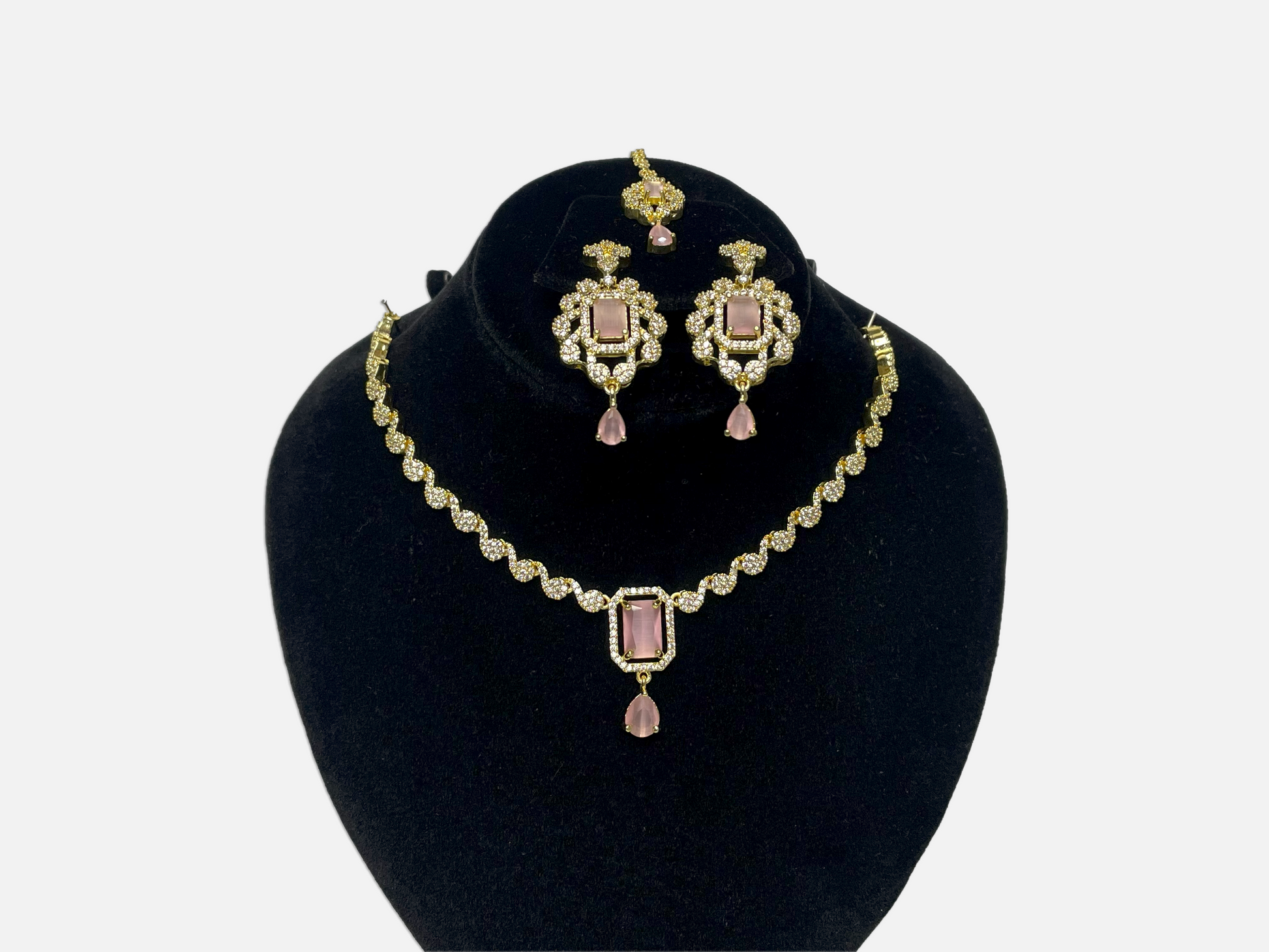 Add a touch of elegance to your style with the square pendant Set. This matching set includes a beautiful necklace, earrings, and ring, all designed with a classic square stone and small shiny accents. The soft drop detail adds a graceful finish, making it perfect for both special occasions and everyday wear.
